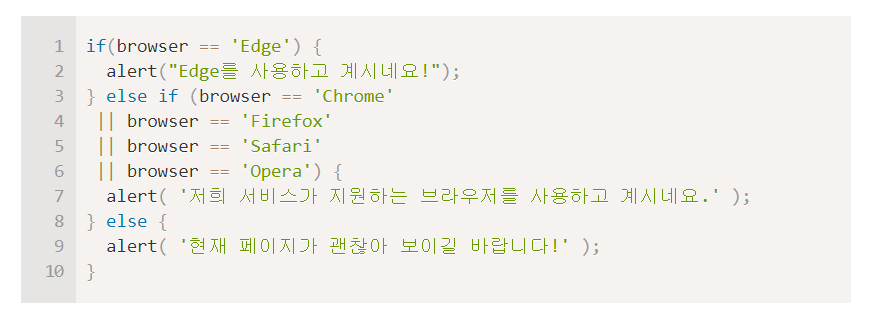 if (browser == "Edge") {alert("Edge를 사용하고 계시네요!");}