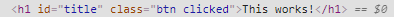 "This works!"의 클래스 이름을 "btn"으로 지정하였다.