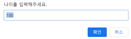 위의 창에서 취소 버튼을 누르면 "null" 값이 반환되어 "당신의 나이는 null살입니다."가 반환된다.